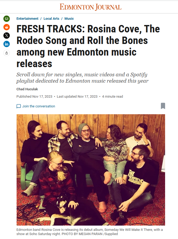 FRESH TRACKS: Rosina Cove, The Rodeo Song and Roll the Bones among new Edmonton music releases